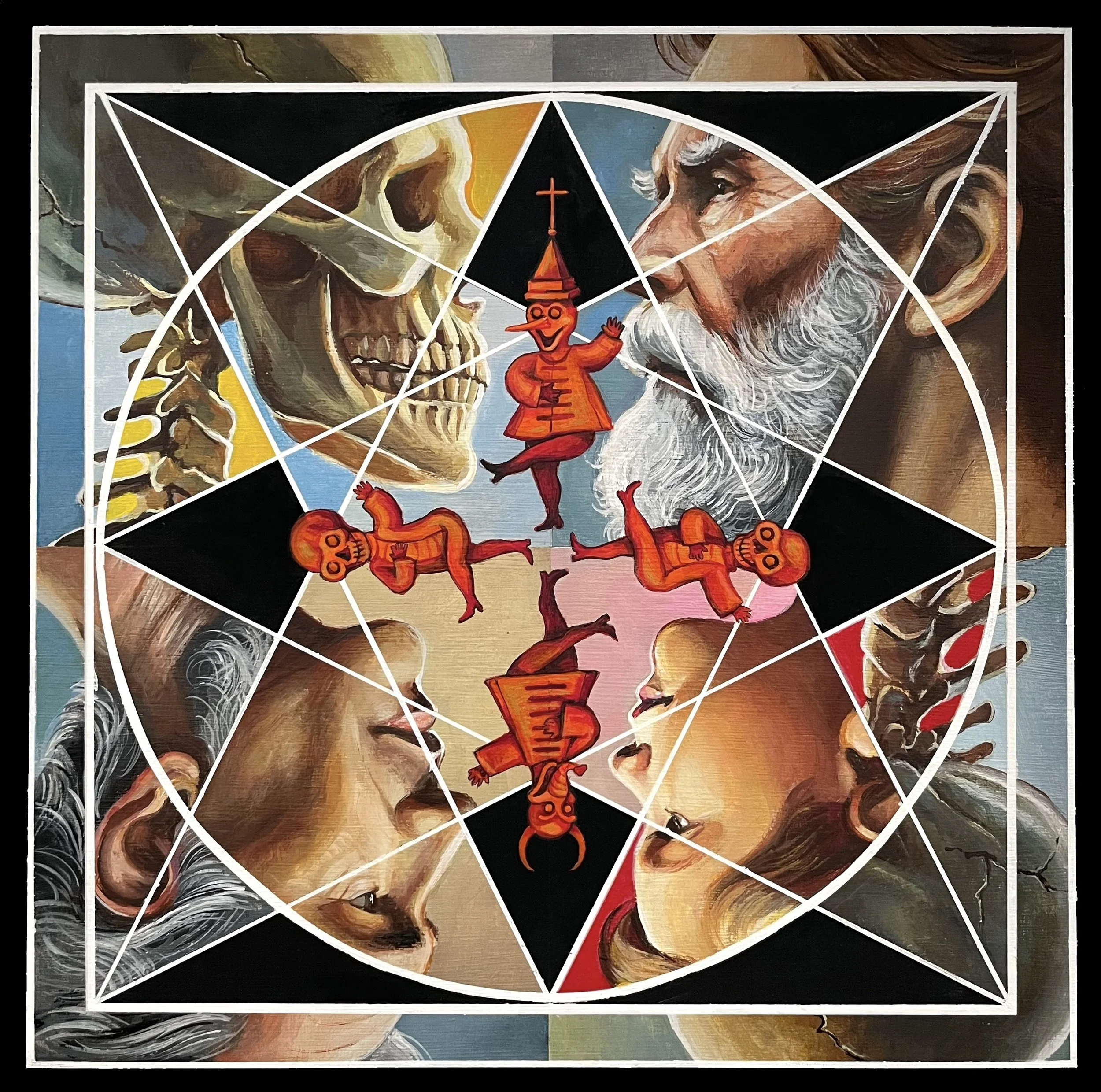 Brujula , acrylic on wood panel , 12” x 12” , 2025